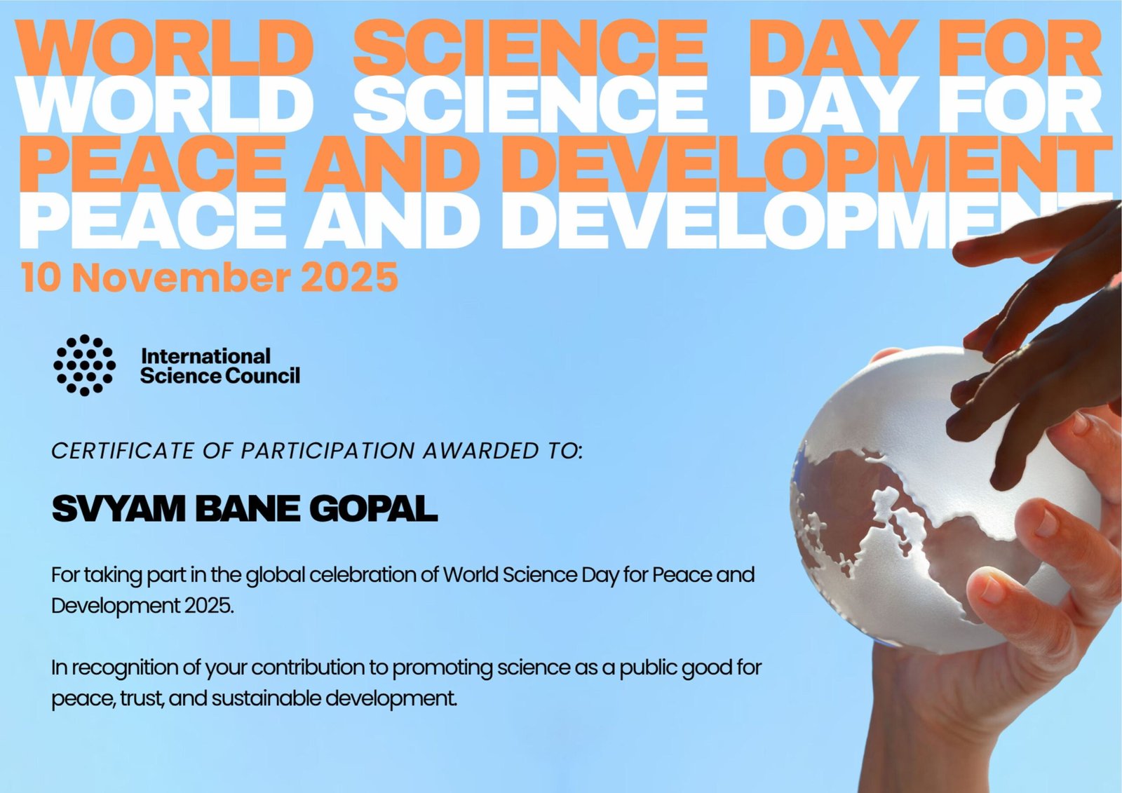 इसी संदर्भ में यह भी बताना चाहेंगे कि ……… साइंस को समाज की भलाई के लिए इस्तेमाल करने के लिए, विश्व प्रसिद्ध संस्था “इंटरनेशनल साइंस कॉउन्सिल” ने “स्वयं बनें गोपाल” समूह को प्रशंसात्मक सर्टिफिकेट भेजकर धन्यवाद दिया है (वह सर्टिफिकेट, ठीक ऊपर दी हुई फोटो के रूप में प्रकाशित है) ! “इंटरनेशनल साइंस कॉउन्सिल” लगभग 100 साल पुरानी संस्था “इंटरनेशनल कॉउन्सिल फॉर साइंस” और 75 साल पुरानी संस्था “इंटरनेशनल सोशल साइंस कॉउन्सिल” के मिलन से बनी है !